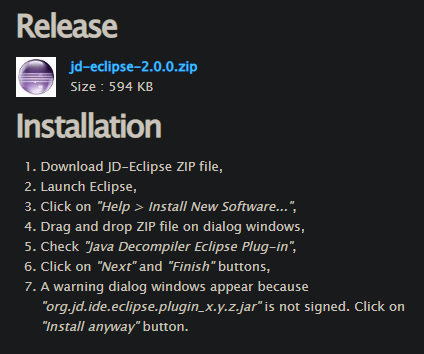 - JD-Eclipse 항목의 jd-eclipse-2.0.0.zip 다운로드
