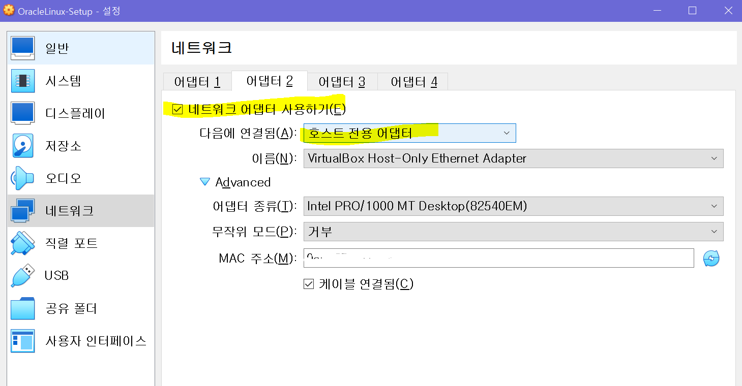 - 네트워크 어댑터 사용하기 : 호스트 전용 어댑터