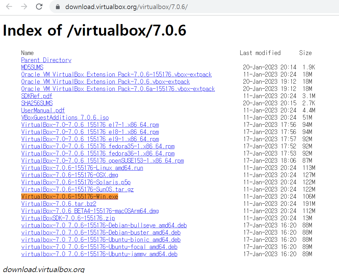 최신버전과 달라 해당 버전의 아카이빙 사이트를 링크에 걸어놨는데, 현재 Windows에서 테스트서버를 구축할 예정이므로 *Win.exe 선택