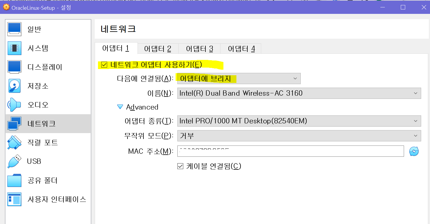 - 네트워크 어댑터 사용하기 : 어댑터에 브리지