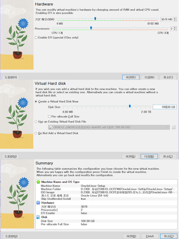 ※ 참고 : Oracle DBMS는 최소 메모리 2GB 초과에서만 설치 가능하기 때문에 3GB로 잡았다.