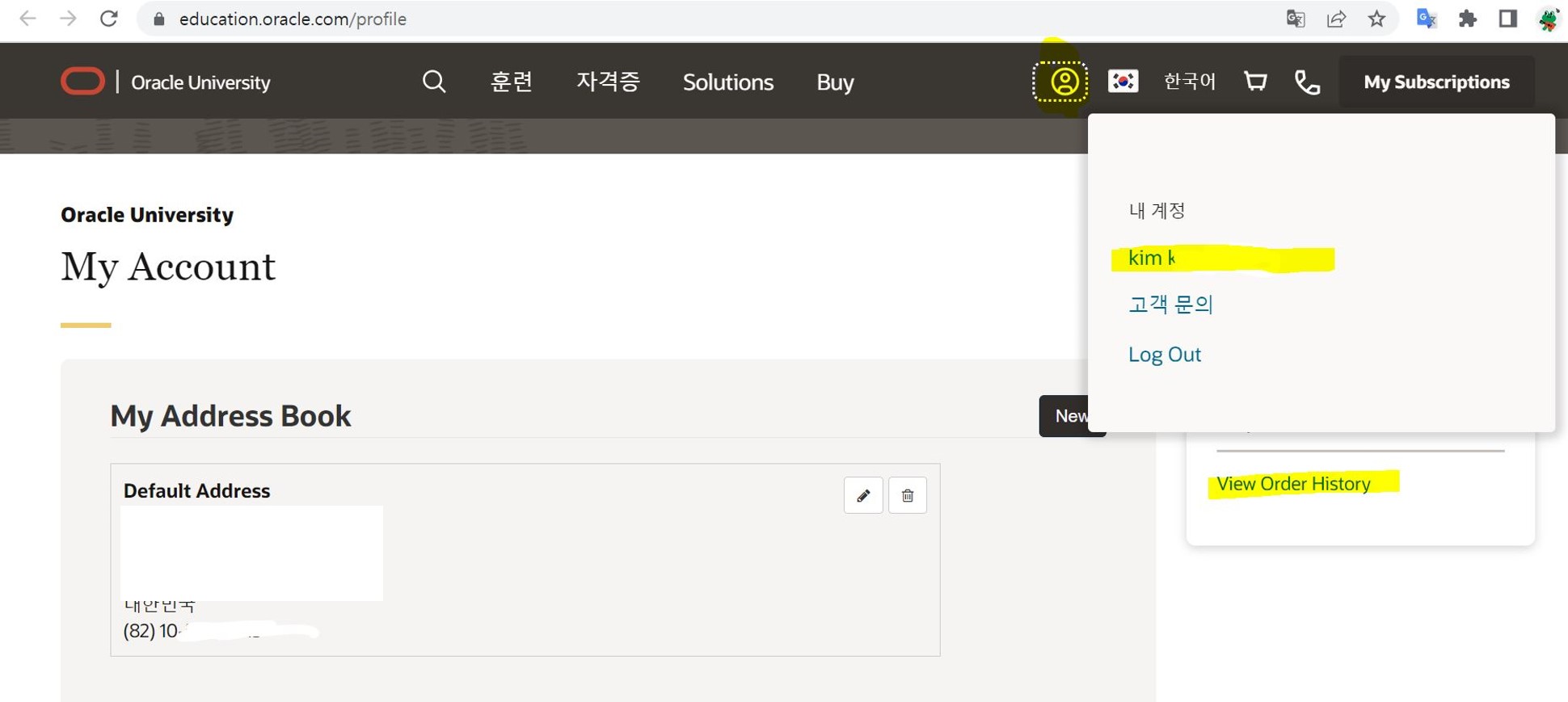 - 24~48시간 이내에 주문이 완료되었음을 확인하는 또 다른 이메일을 받게 됩니다. "귀하의 Oracle University 주문이 접수되었습니다" 라는 제목을 찾으십시오.