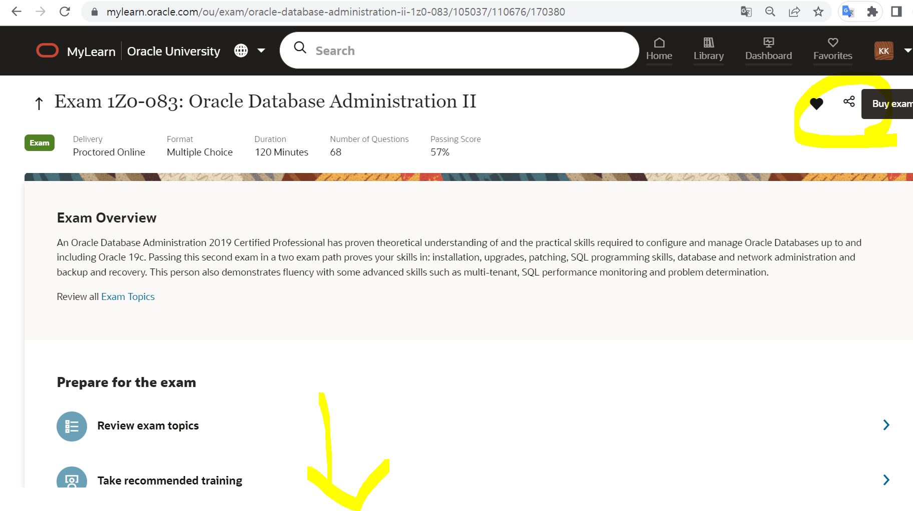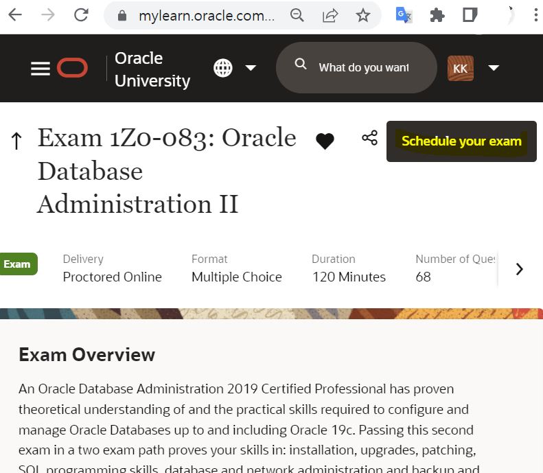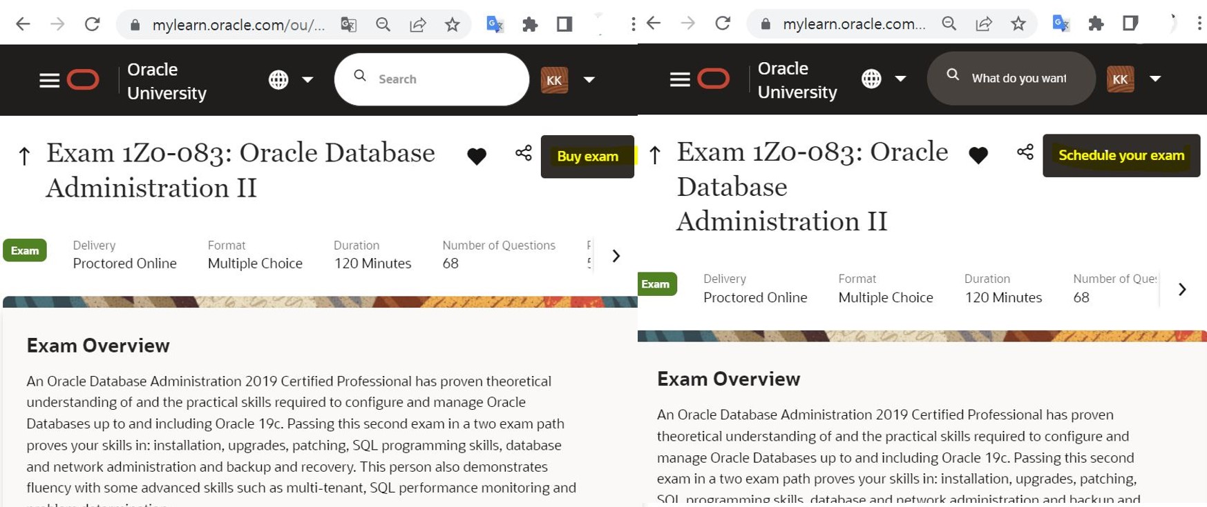 1) https://mylearn.oracle.com/ 접속 로그인후 , 083 페이지로 접속 Schedule your exam 버튼을 클릭