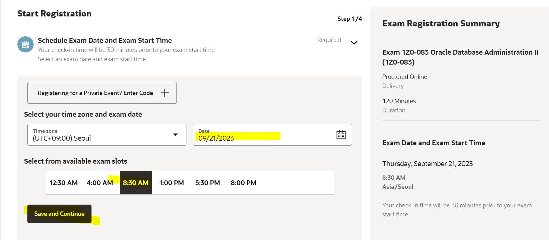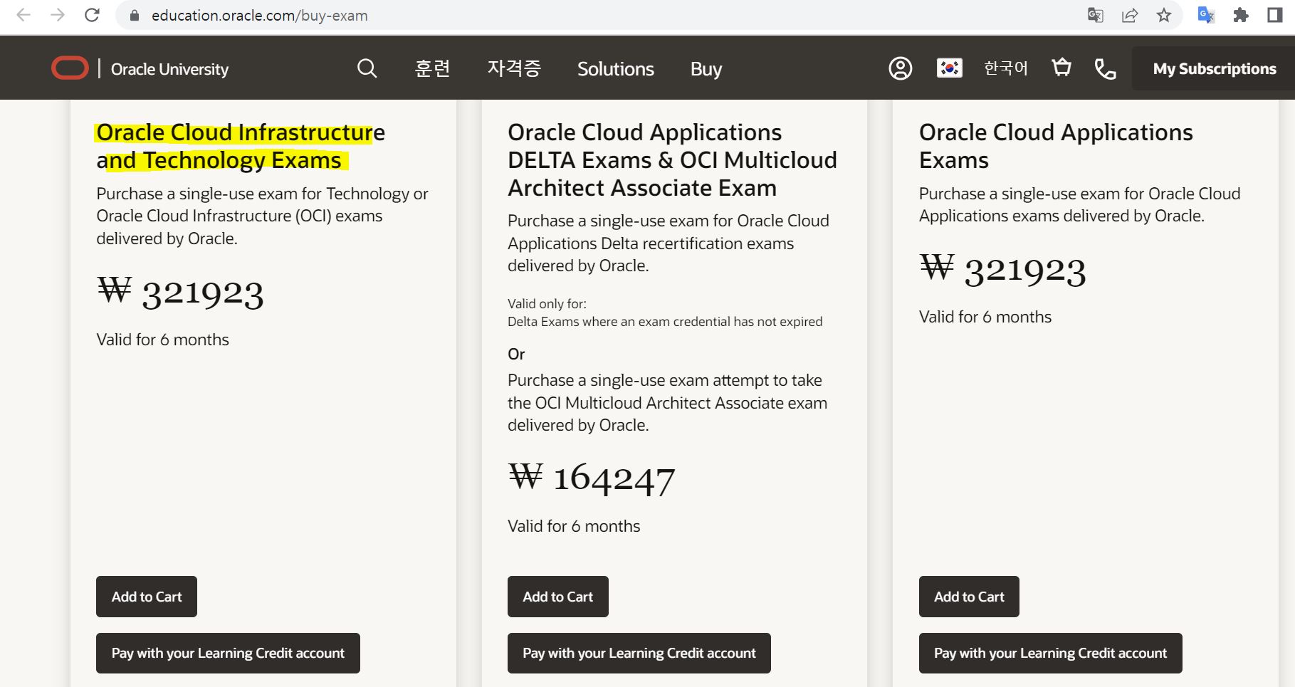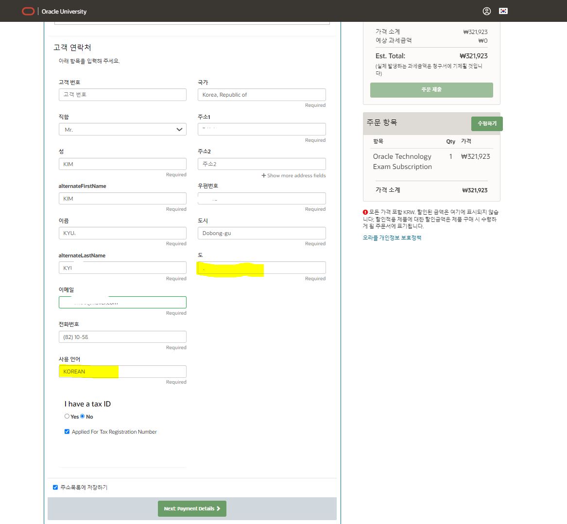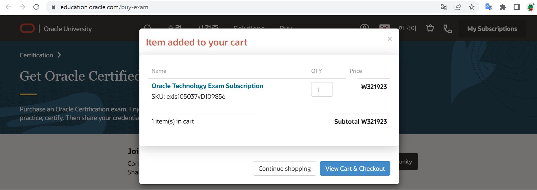 Oracle 사이트가 느려서 하루에 구매~시험 예약을 진행하기 어려운 편이니 시험치기 1주일 정도 전에 미리 구매/시험예약을 해놓는 것을 추천한다. 참고로 시험날을 일요일로 잡을 수 없었던 걸로 기억