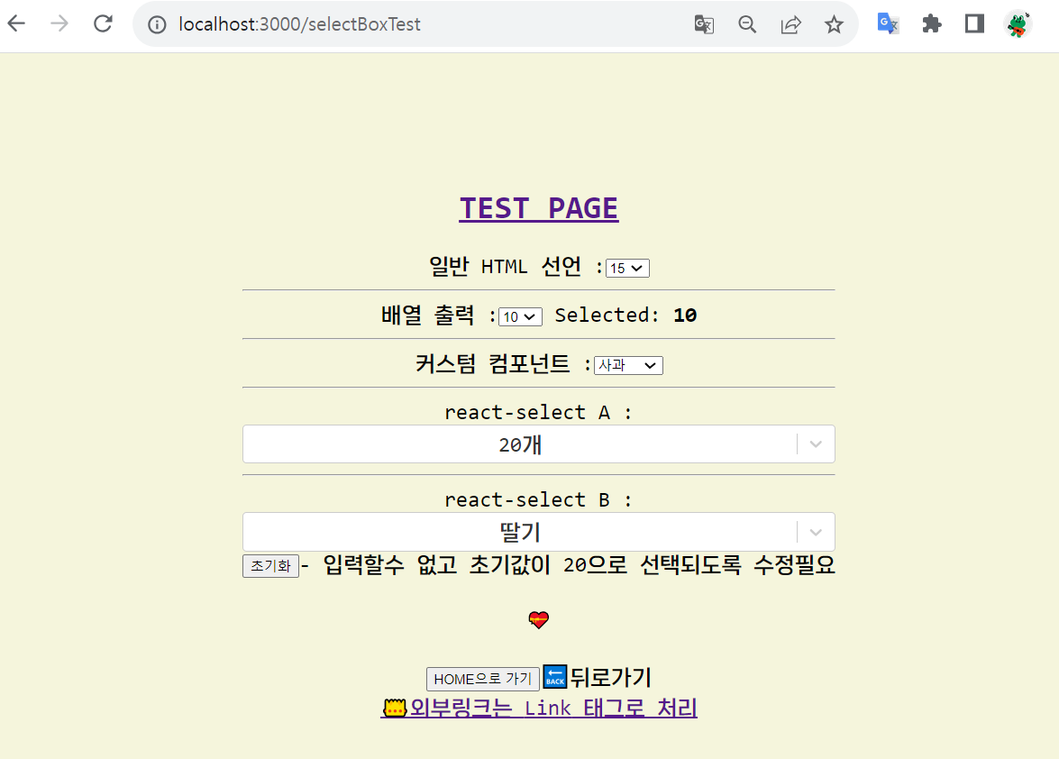 위 3)의 문제를 해결하려다가 select 컴포넌트에 대해 조사하기 시작했고 이쯤되니 왜 화면을.. 보기좋게 만들어줘야하지..? < 란 스스로의 벽에 막혀서 기능 테스트만 진행했다.